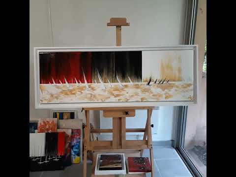 Ce tableau de la collection "Marines" a été peint au couteau sur une toile de 40x120 cm en technique mixte.