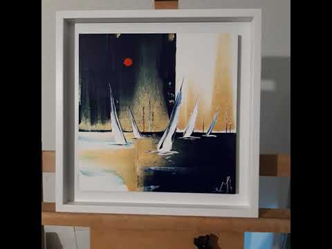 Ce tableau de la collection "Marines" a été peint au couteau sur un panneau MDF de 25x25x1.6 cm en technique mixte.