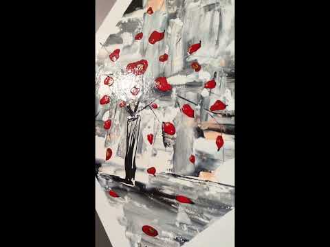 Ce tableau est peint sur un carton entoilé de 30 x 30 cm, collé sur un panneau MDF de 30 x 30 com, vissé sur un panneau MDF 40 x 40 cm en diagonale peint en argenté lui-même vissé sur un cadre 52 x 52 cm peint en noir.