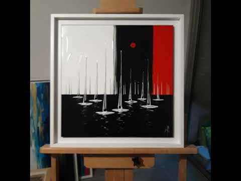Ce tableau de la série "Marines" est peint au couteau sur une toile de 40x40x3 cm en technique mixte.