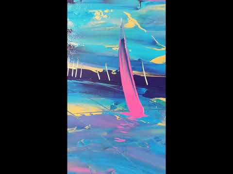 Ce tableau de la collection "Marines" est peint au couteau sur une toile de 40 x 40 cm en technique mixte.